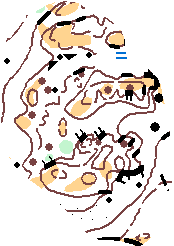 | Terrängbeskrivning | Bestående av skogsmark till största delen barrskog. Ett mindre antal stigar som inte är sammanhängande finns. En skogsbilväg går genom området och används som ledstång för de lättaste banorna och korsar övriga banor. Flertal öppna och bevuxna sankmarker finns. Svag kuperad terräng med ett stort antal små höjder och sankmarker till måttlig kupering med mer detaljrika sluttningar och höjder och med några branta partier. Framkomligheten är god. På vissa partier har tidigare gallring gjorts som till viss del ligger kvar och några enstaka små stenbundna partier finns. |
